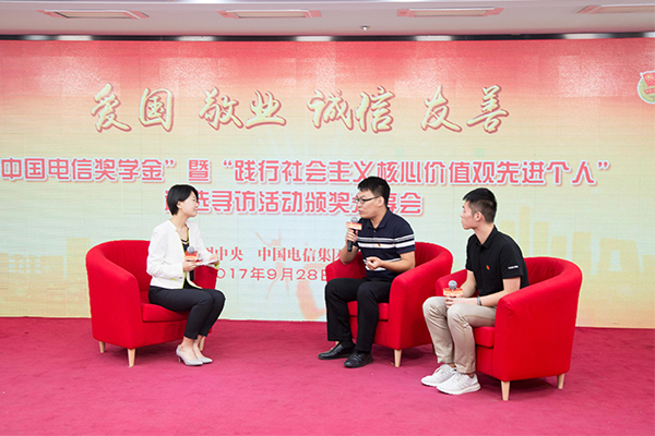 据悉,“中国电信奖学金”暨“践行社会主义核心价值观先进个人”遴选寻访活动始于2014年,旨在深入贯彻落实习近平总书记系列重要讲话精神,在青年大学生中深入开展培育和践行社会主义核心价值观活动。活动自5月启动以来,经过校级、省级、全国三级评审,遴选出50名“中国电信奖学金·天翼奖”暨“践行社会主义核心价值观先进个人标兵”获得者、1661名“中国电信奖学金·飞Young奖”暨“践行社会主义核心价值观先进个人”获得者。(编辑/褚玉晶)