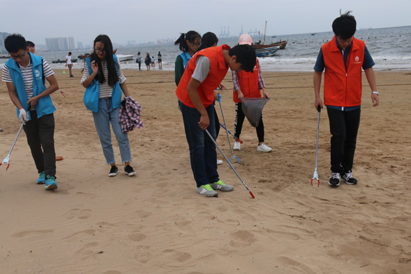早上八点,我校的200名志愿者在图书馆门前集合,步行前往至专项服务活动地段。在海滩,志愿者们分为沙滩和栈道两组,仔细搜索沙滩上、道路里、草丛中的纸屑、烟头等细小垃圾,集中捡拾到垃圾袋中。在公交站亭,志愿者们仔细擦拭站牌、座椅等,不放过每一个角落的污渍。