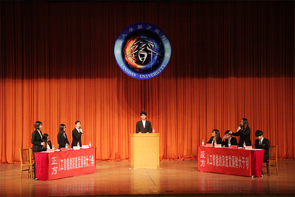 一段精彩的视频介绍了本届潮汐杯14支队伍历时两个多月的比赛历程。“决战之夜,谁能问鼎巅峰”的发问,迅速点燃了在场观众的热情。决赛场上,经济管理学院辩论队与文法学院辩论队围绕“人工智能的深度发展利大于弊还是弊大于利”这一辩题展开激烈辩论。双方辩手唇枪舌剑,你来我往,旁征博引,现场气氛一度高涨。无论是质询对辩环节还是自由辩环节,双方辩手都紧紧围绕自己的论点,抓住对方观点中的漏洞,据理力争,现场观众掌声不断。在接下来的观众提问环节中,现场同学积极提问,辩手回答条理清晰而不失幽默,将现场气氛带向又一个高潮。激烈交锋过后,文法学院党委书记刘叶涛对两方辩论队成员做了现场点评,并引用逻辑学知识对此辩题做了总结。最终,经济管理学院辩论队胜出。