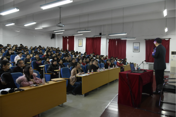 讲座中,何建宇以十九大报告的两个高频字“新”和“党”为切入点,系统解读了十九大报告的核心观点和深刻内涵。何老师结合改革开放的历程和国内经济政策、社会政策等方面的变化,阐述了我国社会主要矛盾新表述的历史背景和深刻含义;以身边的社会组织和高校学生社团为例,分析了新形势下加强党的群团工作、加强党的领导和党的建设的重要性;结合新时代的历史方位说明了教育工作者应如何教育引导青年将自己的“小时代”融入祖国的“大时代”。在现场互动环节,何老师围绕青年党员培养、青年在新农村建设中的作用等问题与老师们进行了交流讨论。他宽广的工作视野、扎实的理论素养、独到的分析见解赢得了阵阵掌声。