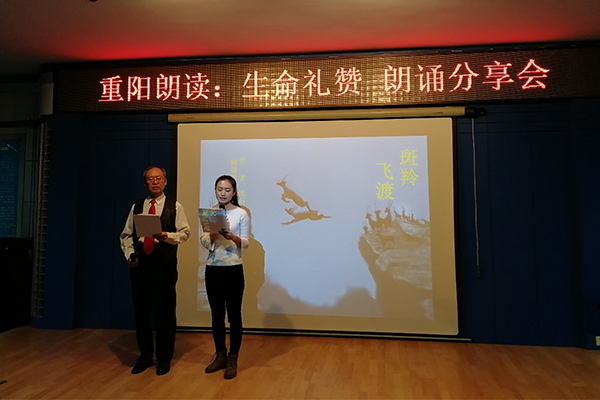 【新闻中心讯】为倡导全民阅读,激发广大师生的阅读热情,助力校园文化建设,11月10日晚7点,由图书馆和离退休工作处“秋实”读书会合作举办的“重阳朗读:生命礼赞”朗诵分享会在图书馆718报告厅举行。我校“秋实”读书会成员、离退休教职工、来自各学院的师生读者及图书馆党员职工等40余人参加了本次活动。