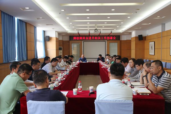 会上,姜文超向与会人员介绍了我校多部门联合开展“师德师风促进月”活动的背景、意义和原则;教务处处长金海龙宣读了“师德师风促进月”活动的实施方案;宣传部部长仵凤清向与会人员传达了河北省教育工委加强师德师风建设的有关文件精神;副处级组织员杜超代表组织部发言,他谈到了如何将高校师德师风促进与基层党支部建设有机结合。各二级学院领导同志也就如何落实好“师德师风促进月”的相关工作,结合各单位实际谈了开展设想,并就如何完善活动方案提出了一系列建设性的建议和意见。