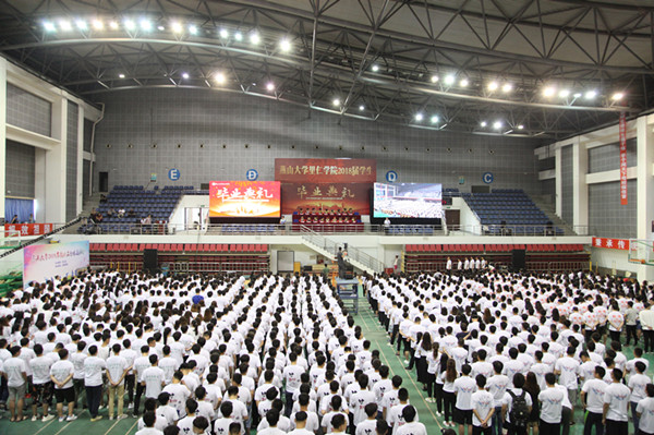 【新闻中心讯】6月22日上午9时整,燕山大学里仁学院2018届学生毕业典礼在东校区体育馆隆重举行,全院2833名毕业生身着自己设计的文化衫参加了典礼。燕山大学校长刘宏民、副校长赵永生,各兄弟学院领导以及里仁学院党政领导出席并在主席台就坐。里仁学院党委书记张向前主持典礼。