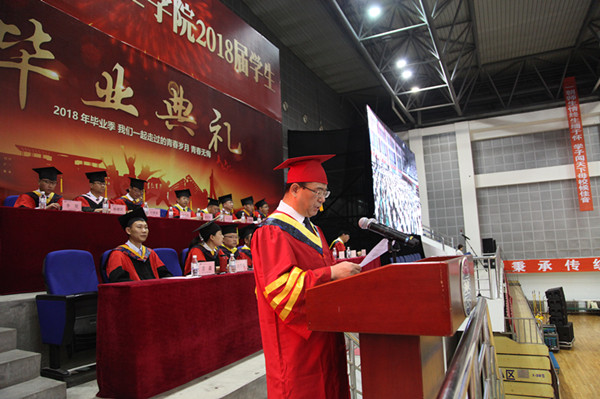 来自2014级机械设计2班的刘小爱同学和母亲孙红革女士代表毕业生和家长发言。“里仁学院教会我自立自强的品德,包容了我的懵懂无知,给我搭建了展示自我的舞台!”刘小爱同学的发言,道出了在场每一位毕业生的心声。“孩子们能遇到这么好的老师,在这么好的环境里学习,我们家长很放心也很满意。孩子,未来你要学有所用,要做到诚实可信,学会宽容,懂得感恩。”孙红革女士的发言,深深地表达了每一位家长对学校的感谢和对孩子的殷切期盼。