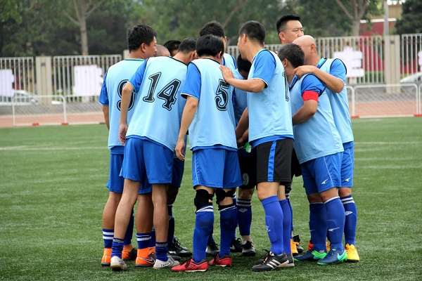 教职工队员赛前加油鼓劲(新闻中心贾孟玮/摄)