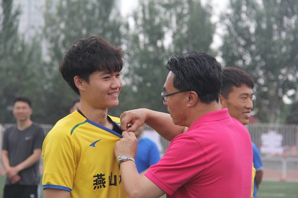 场上相视一笑,场下深情拥抱,传承的是燕大师生深厚的情谊。比赛结束后,教师队员与毕业生队员共同高喊“我爱燕大,燕大加油!”尽显师生对学校的深厚感情。(编辑/褚玉晶)