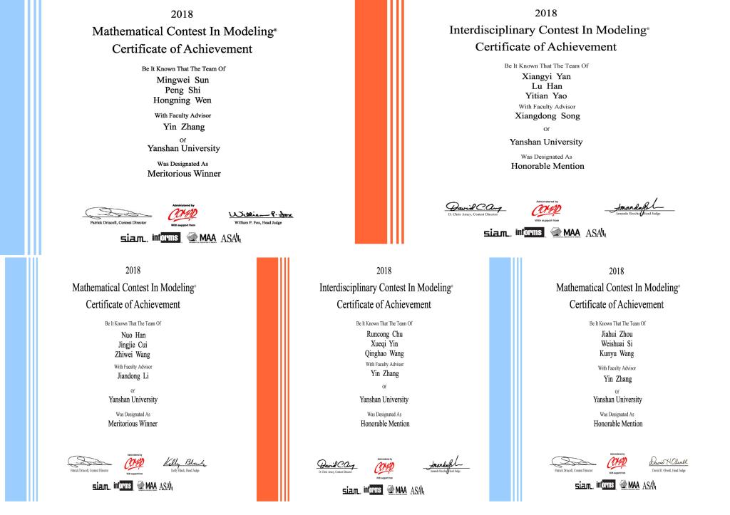 燕山大学2018美国大学生数学建模竞赛获奖名单