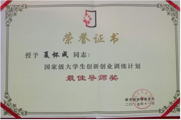 燕山大学夏怀成教授获评“国创计划十周年”最佳导师奖