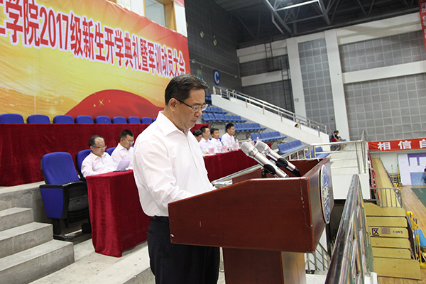 2017级机械设计制造及其自动化5班王瑞桢同学的父亲王胜才先生代表新生家长们表达了对学院办学实力的充分信任和对办学理念的充分认同,并语重心长地对全体新生提出了三点希望,一是自立自强,二是端正思想,三是珍惜缘分。