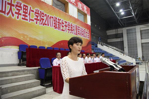 数学教研室主任肖晓丹老师代表里仁学院全体教师发言,她向新同学的到来表示热烈欢迎,并与大家分享了自己大学时期的学习生活经验,也对同学们提出了具体要求:尽快转变角色,主动适应环境;刻苦用功,提高综合素质。