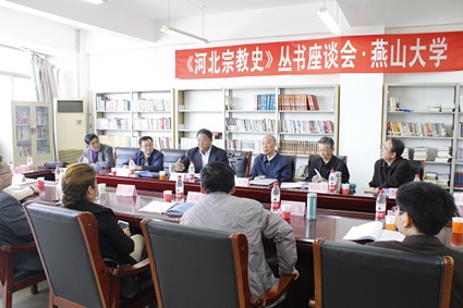 【新闻中心讯】受河北省民族宗教事务厅的委托,4月22日在马克思主义学院举办了《河北宗教史》丛书座谈会。河北省民族宗教事务厅原厅长、丛书主编鞠志强一行五人参加了座谈会。秦皇岛市民族宗教事务局副局长蒋世超、马克思主义学院院长王新华参加了座谈会,座谈会由马克思主义学院党委书记、燕山大学宗教与文化研究所所长任海主持。