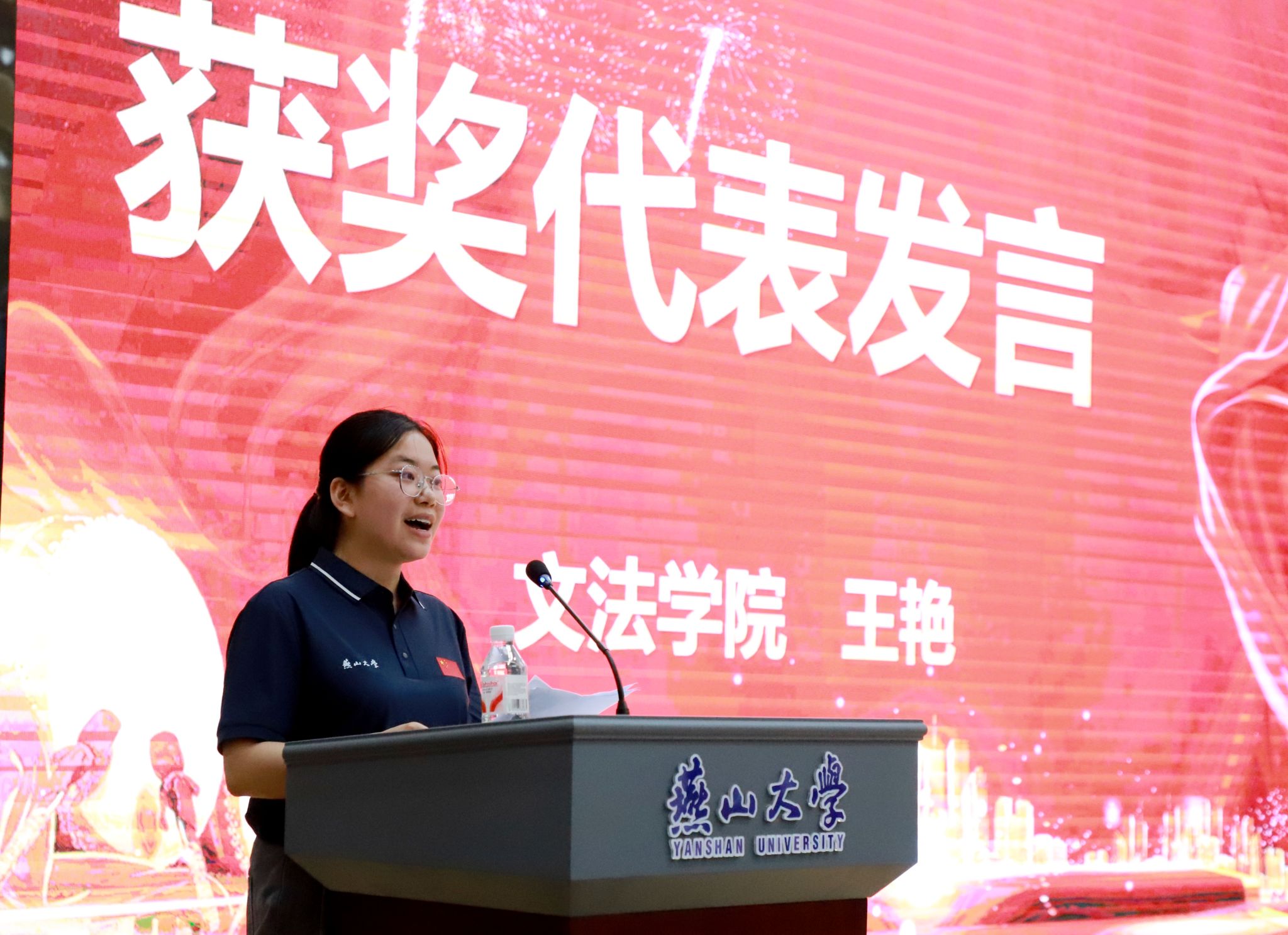 招生工作先进个人学生代表、文法学院王艳发言