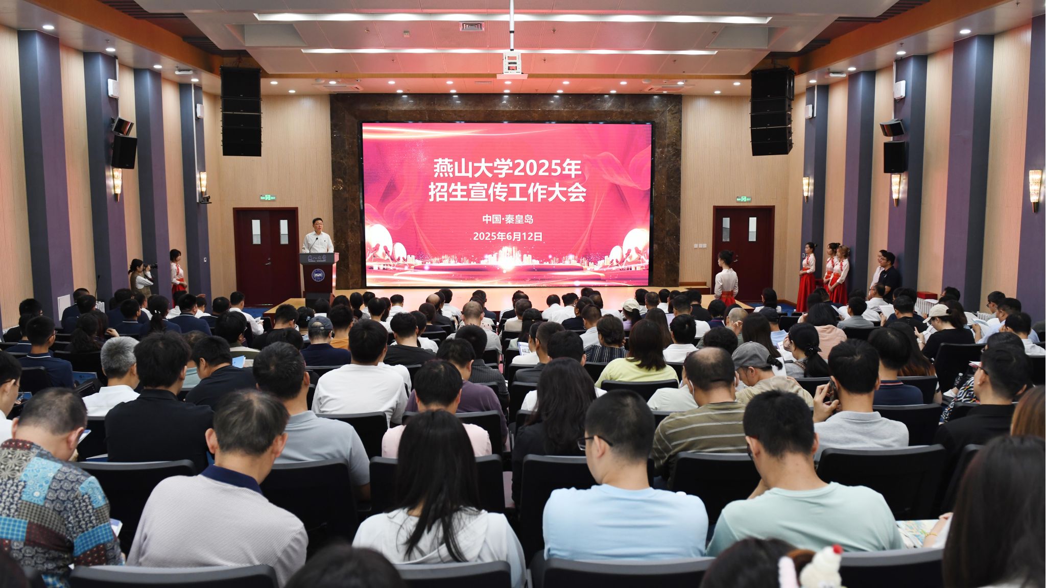 【新闻中心讯】6月12日上午,燕山大学2025年招生宣传工作会议在会议中心报告厅召开。学校领导赵险峰、蔡星周、王德松、陈国强、黄传真、王跃华、李春玲出席大会,学校招生工作领导小组成员、相关职能部门负责人、各学院相关负责人、教师代表、学生代表及受表彰的先进集体和个人参加大会。大会由招生就业处处长宋晓飞主持。