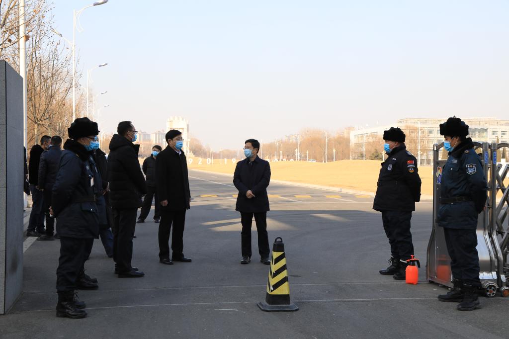 在山东堡路校门(西校区7号门)保安亭,校领导与值守人员亲切握手慰问,了解了学校校卫队寒假期间的工作状况和工作人员的年夜饭安排情况,对值守人员的辛勤工作表示感谢,并为他们送上了慰问礼品与新春祝福。校领导表示,虽然寒假期间学生大多离校返家,但校园防疫工作依旧十分繁重,希望大家继续坚守岗位,确保校园安全。