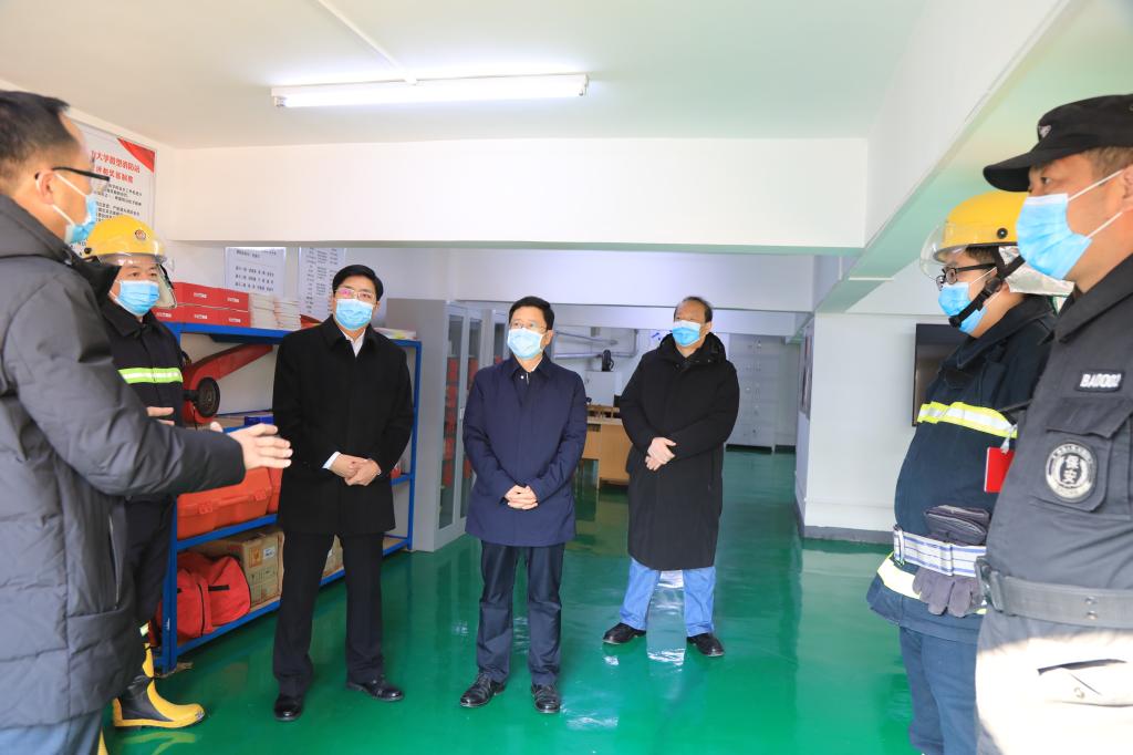 在西校区微型消防站慰问消防救援值班人员时,校领导查看了学校内部消防安全器材与设施的配备情况和春节期间值守人员分配情况,他们表示,在校园内部设置功能完备微型消防站,能够快捷有效地处置校园易发生的各类危险情况,有力地保证春节期间留校学生的安全。