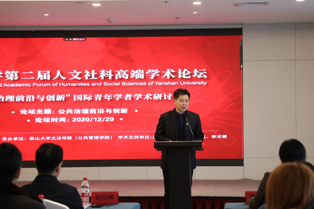 赵险峰致欢迎词,他代表学校对各位专家学者克服疫情影响、百忙之中参加本次论坛表示诚挚的感谢,对大家长期以来关心、支持燕山大学人文社科发展表示衷心的感谢。他简要介绍了燕山大学的概况和近期人文社科方面取得的成绩,并表示本次论坛的举办为国内外公共管理专家尤其是青年学者搭建了乐竞体育在线交流平台,也为我校提供了向各位专家学者和兄弟院校学习交流的机会,将进一步推动我校公共管理学科以及人文社科的发展。