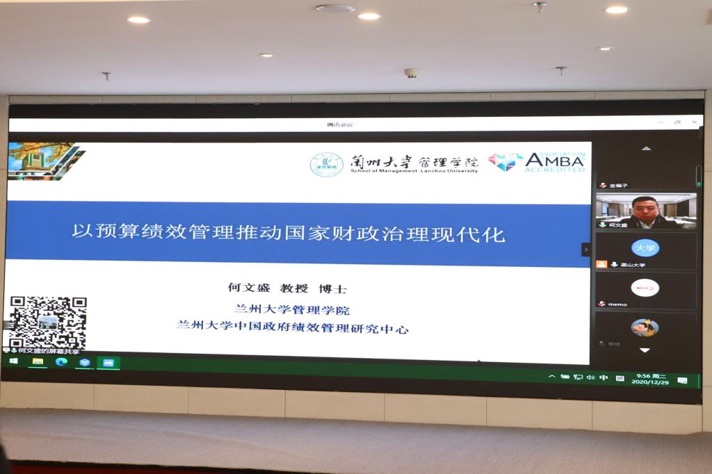 何文盛教授线上作题为“以预算绩效管理推动国家财政治理现代化”的主旨报告
