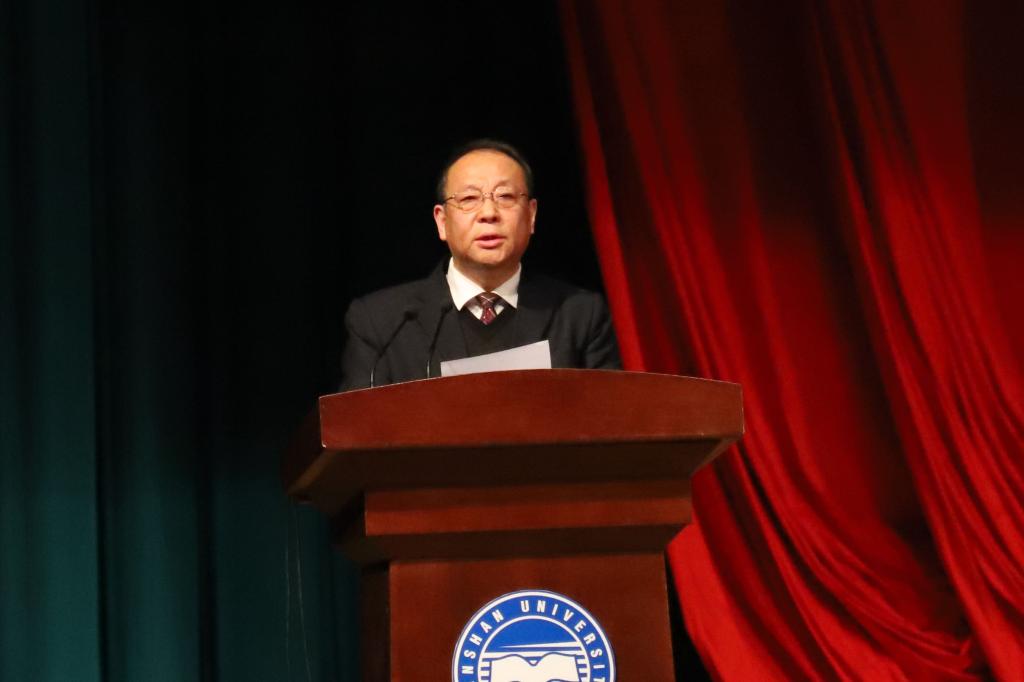 孙贺代表共青团河北省委讲话。他指出,燕山大学从百年奋斗到甲子创业,取得了令人瞩目的办学成就,为河北乃至全国作出了重要贡献。燕山大学团委着力加强思想引领,创新服务能力,开创育人品牌,今年5月获评基层团组织的最高荣誉——“全国五四红旗团委”,各项工作取得明显成效。孙贺希望燕大青年学生要坚定理想信念,锤炼过硬本领,矢志不移谱写新时代青春华章;学生组织要把握时代主题,践行服务宗旨,引领广大同学在投身强国伟业的生动实践中彰显青春担当;共青团组织要紧扣党政中心工作,推进从严治团,在新时代新征程中展现更大作为。
