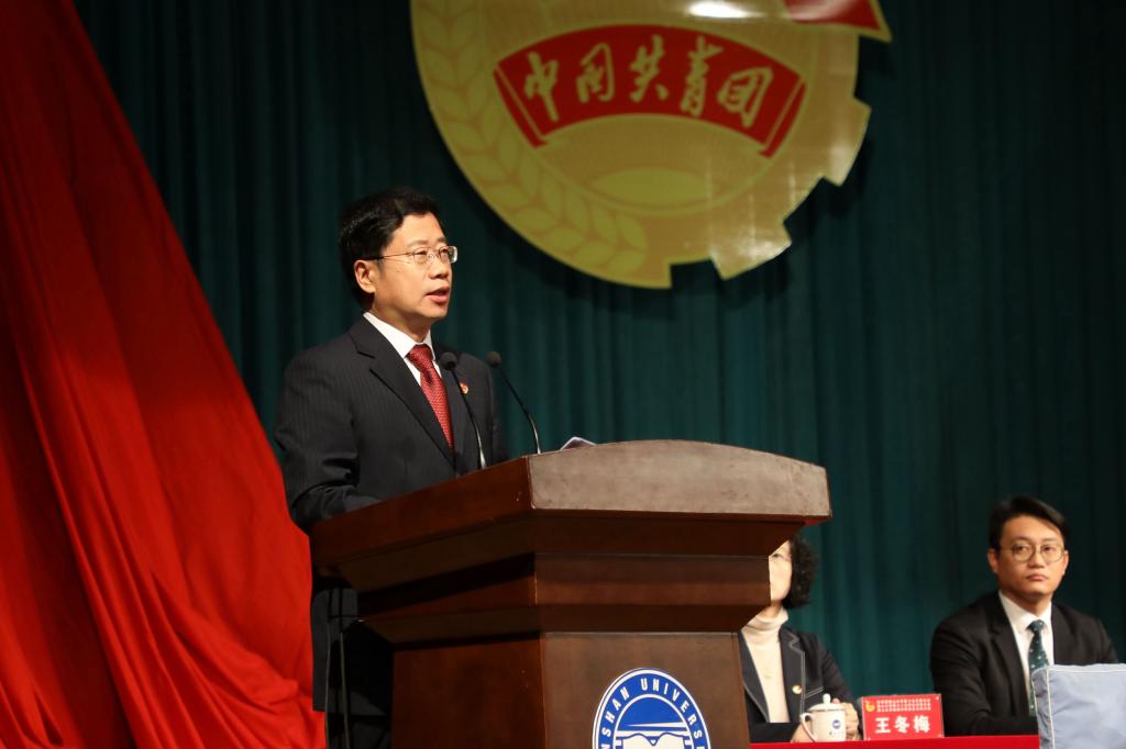 赵险峰代表学校党委作了题为《青春筑梦新时代 砥砺奋进新征程》的讲话。赵险峰高度肯定了我校团学组织在思想政治引领、基层组织建设、推动青年发展、服务青年成长、深化共青团改革等方面取得的优异成绩。赵险峰强调,当今世界正经历百年未有之大变局,党的十九届五中全会昭示我国即将迈入全面建设社会主义现代化国家的新发展阶段,学校第四次党代会开启我校第四次创业的新征程,广大青年生逢其时、重任在肩,要牢记跟党走的初心,勇当实现中华民族伟大复兴和燕山大学事业发展的生力军,奏响新时代的青春之歌。赵险峰代表学校党委提出了殷切希望:一是希望全校团员青年坚定理想信念,践行初心使命,勇做走在时代前列的奋进者、践行者、开拓者、奉献者;二是希望全校各级团学组织聚焦主责主业,大胆改革创新,推动团学工作再上新台阶;三是希望全校各级团干部为党尽职尽责,为青年尽心尽力,当好青年学生的知心人和引路人;四是希望全校各级党组织坚持党管青年原则,支持团的工作,关心青年成长成才。
