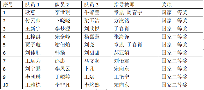 附:燕山大学2020全国大学生数学建模竞赛获国家奖名单