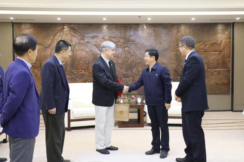 赵险峰和赵丁选与索尔达托夫教授进行了亲切的交流。赵险峰对索尔达托夫教授所做出的成绩进行了高度的赞扬,希望他与田永君院士团队深入合作,做出更大成绩。赵丁选希望索尔达托夫教授能够把他在海外多所高水平大学工作的经验介绍给燕山大学,在学校工作和生活愉快,与田永君院士团队一起把高压科学研究中心建设得更好。