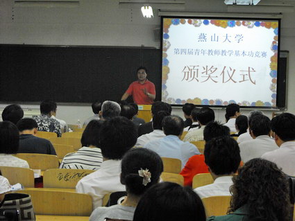 副校长孔祥东在颁奖仪式上发表讲话,他首先对获奖的青年教师表示祝贺,对各院系一个月以来的认真组织和积极准备表示肯定,同时对参与评奖的各位老师不辞辛苦表示感谢。孔副校长在讲话中对青年教师教学基本功竞赛提出了三点意见,一、目标明确,效果明显,切实把教学工作作为中心工作来抓。二、不断努力,再接再厉,把教学基本功竞赛坚持下去。三、借助东风,深入改革,努力提高青年教师教学能力。