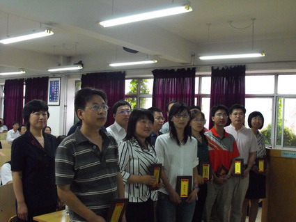 下午五点半,颁奖仪式在第四教学楼114教室举行。仪式由校工会主席李季主持,校党委副书记盛婉玉、副校长孔祥东出席了颁奖仪式。在仪式上,校党委副书记盛婉玉宣布了获奖名单,环化学院王帅杰、文法学院司景辉、里仁学院齐凯君等7名教师获得一等奖,里仁学院鄂成国、白塔娜,艺术学院王燕、外国语学院王娜等14名教师获得二等奖,电气学院王立乔、信息学院王林等18名教师获得三等奖。在座的各位领导及评委组组长为获奖的青年教师颁奖。