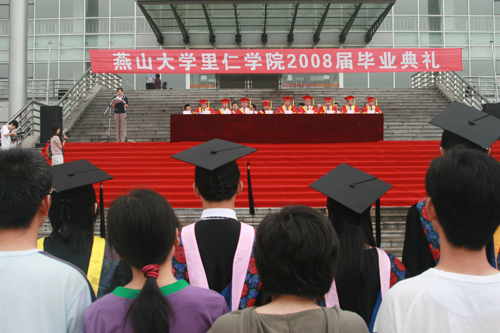 【新闻中心讯】6月27日上午7:30,燕山大学里仁学院2008届本科生毕业典礼在西校区实验中心楼前举行。
