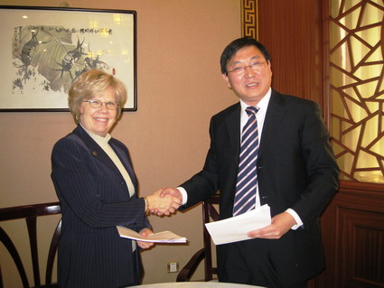 【新闻中心讯】2008年12月8日中午12点,我校副校长张福成教授与我校姐妹学校代表、美国托力多大学教务长兼执行副校长海格特(Rosemary Hagget)教授在北京首都大酒店晓月厅代表两校签署了《中国燕山大学与美国托力多大学联合建立孔子学院的执行协议》,出席签字仪式的还有我校国际合作处处长兼国际教育学院院长刘泽权教授和托力多大学国际发展部助理主任郭爱戈博士。此协议是我国国家汉语国际推广领导小组办公室(简称“国家汉办”)暨孔子学院总部上月与美国托力多大学签署的关于在美国托力多大学建立孔子学院的框架协议的执行协议,我校作为托力多大学的长期合作伙伴,受国家汉办的委托与托力多大学联合建立孔子学院。此前,我校校长刘宏民教授与托力多大学校长杰克布斯教授已分别代表两校在执行协议上签字。