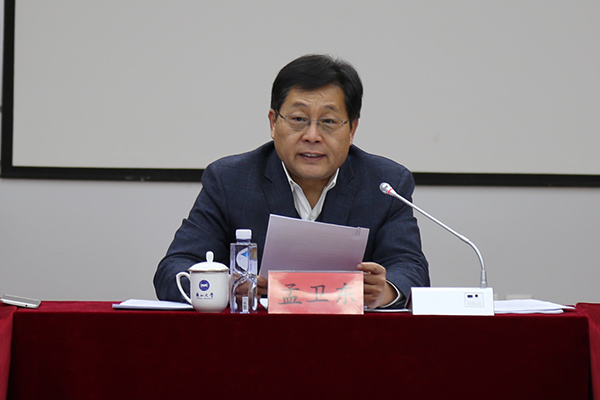 孟卫东受党委常委会委托向会议作报告。他指出,2017年我们有期盼,有突破,也有遗憾,面对困难和挑战,学校党委始终坚定发展信心,坚持正确方向、坚持立德树人、坚持服务大局、坚持改革创新、坚持内涵发展,团结带领全校师生员工发扬自强不息、迎难而上的优良传统,凝心聚力、负重前行,用行动之笔书写了开拓奋进的新篇章。他从学校办学成果取得突破性进展、牢牢把握中国特色社会主义办学方向、努力推动各项改革取得新进展、着力推进全面从严治党向纵深发展、全面落实立德树人根本任务、扎实推进“双一流”建设、大力提高开放办学水平、着力优化办学环境等八个方面回顾了学校2017年主要工作。他结合贯彻落实党的十九大精神总背景,分析了学校发展面临的新形势,并指出了学校工作中还存在的不足、面临的困难和挑战,表示将继续采取有效措施切实解决问题。