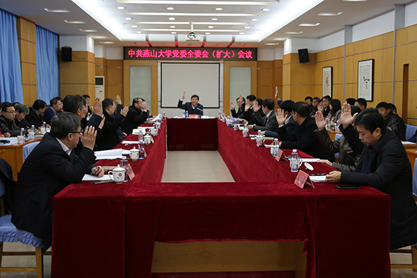 会上,与会党委委员认真审议了《燕山大学2018年工作要点》和《燕山大学2018年财务预算》,经举手表决,会议一致通过了学校工作要点和财务预算。