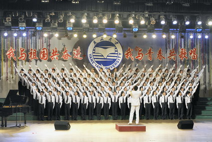【新闻中心讯】4月26日下午1:30,“我与祖国共奋进,我与青春共歌唱”纪念五四运动90周年大合唱比赛暨“五四”文化艺术节开幕式在东校区大学生活动中心举行。