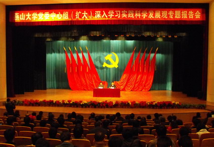 【新闻中心讯】4月1日下午,燕山大学党委中心组(扩大)深入学习实践科学发展观专题报告会在东校区大学生活动中心举行。报告主讲人为中央党校副校长李君如教授,校党委书记孟卫东主持报告会。