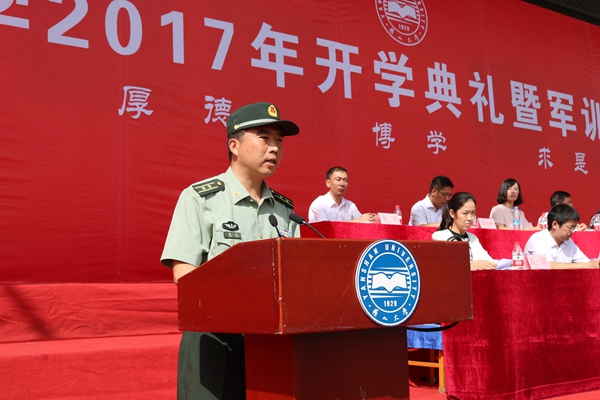 学生工作处副处长产佳宣读了《关于对燕山大学2017级本科生进行军事训练》的决定。