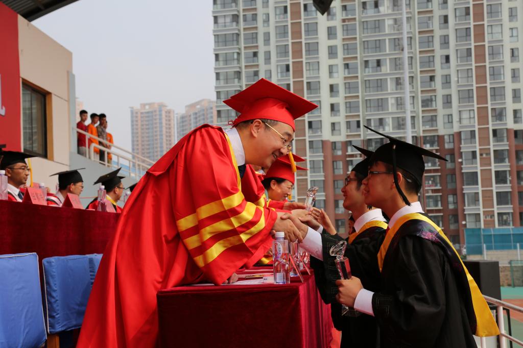 校领导为燕山大学2017届最美毕业生颁发奖杯(杨林阚雪/摄)