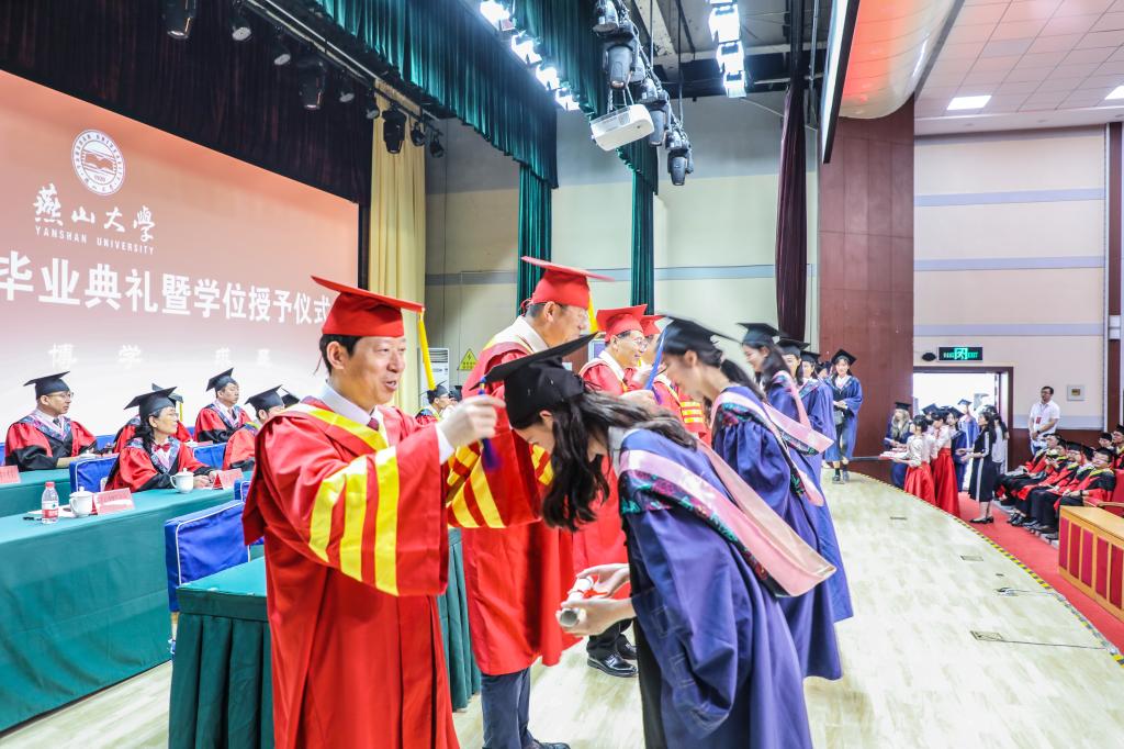副校长赵永生和任家东分别宣读了燕山大学研究生毕业文件和学位授予文件。信息科学与工程学院胡淇伟同学代表毕业生由衷地感谢母校和恩师的培养,并决心秉承燕大精神,奋进新征程,建功新时代,在各自岗位上为实现中华民族伟大复兴的中国梦贡献力量。毕业留学生代表硕士留学生胡兰特别感谢在燕山大学学习期间中国对她的关心、学校对她的培养和老师对她的关怀,表示会把在燕山大学的故事带回她的国家讲给她的亲人和朋友,愿做一名蒙中友谊的使者,为两国友谊做出贡献。电气工程学院博士生导师刘爽教授代表研究生导师祝愿毕业生实现人生梦想,在更广阔的天空展翅飞翔,成为祖国建设和发展的栋梁。