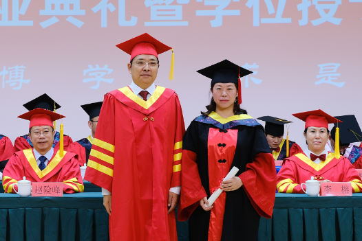 在典礼上,赵丁选为博士毕业生拨流苏并合影留念,学校党政领导为硕士毕业生拨流苏并合影留念。(编辑 蔡常山)