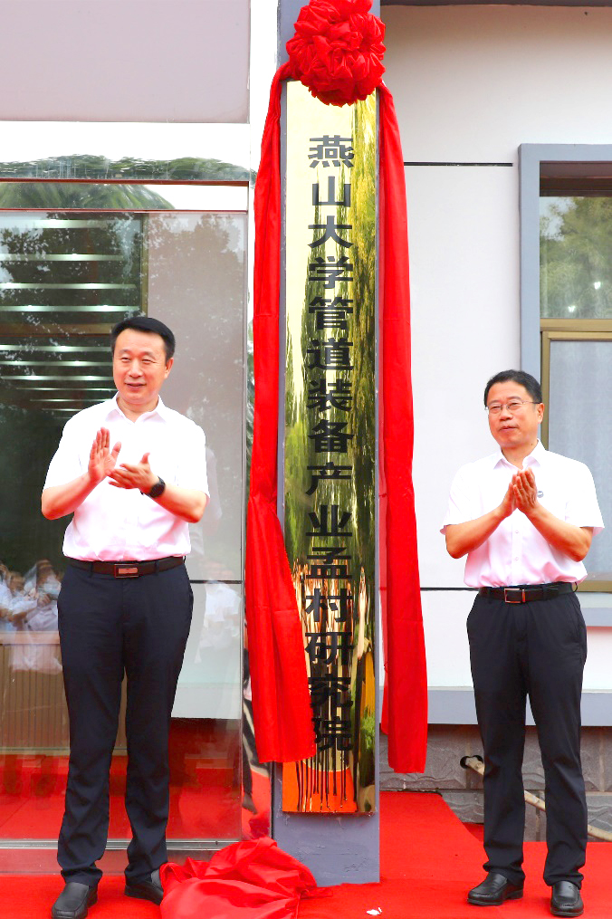 25日下午,燕山大学与沧州市孟村县校地合作签约暨揭牌仪式在孟村县会议中心举行。市领导李治义,孟村县委书记张国辉、县长李国德等县委县政府领导及孟村县重点企业负责人参加了仪式。王德松、李国德分别代表双方签署“孟村县人民政府-燕山大学共建燕山大学管道装备产业孟村研究院协议”。签约仪式后,赵险峰、李治义共同为研究院揭牌,陈国强、张国辉共同为研究院科技人员工作站揭牌。赵险峰在讲话中指出,孟村县的特色产业与燕山大学的优势学科十分契合,双方合作空间巨大、前景广阔。希望研究院契合新时代管道装备产业高质量发展需要,在行业关键技术领域不断取得突破,更好地为改造提升传统产业提供科技支撑,逐步发展成为推动区域经济高质量发展的重要平台。张国辉表示,孟村县委县政府将坚定不移地走产学研合作之路,深化与燕山大学的交流对接,为双方合作提供优质服务。活动中,我校机械工程学院、电气工程学院依托研究院与孟村县多家重点企业首批共签署12项校企合作项目。