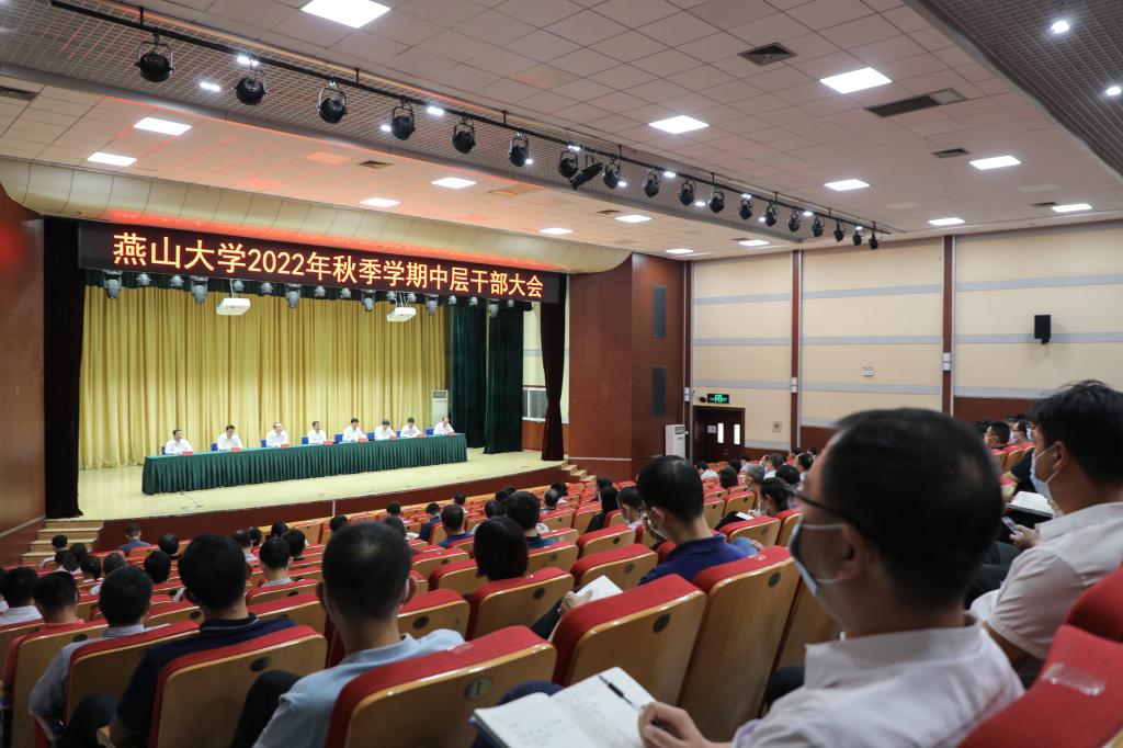【新闻中心讯】8月30日上午,燕山大学召开新学期中层干部大会,校领导班子成员和全体中层干部参加会议。校党委书记赵险峰主持会议并讲话,校党委副书记、校长赵丁选全面总结学校上半年和暑期工作,并就下半年和今后一个时期的目标任务进行安排部署。