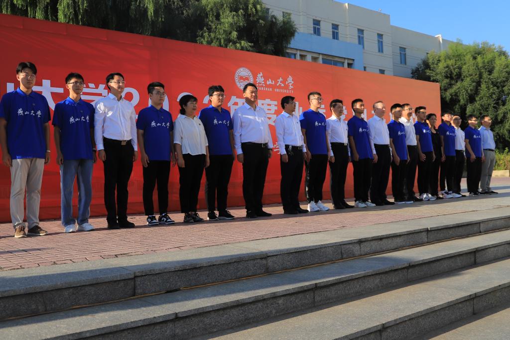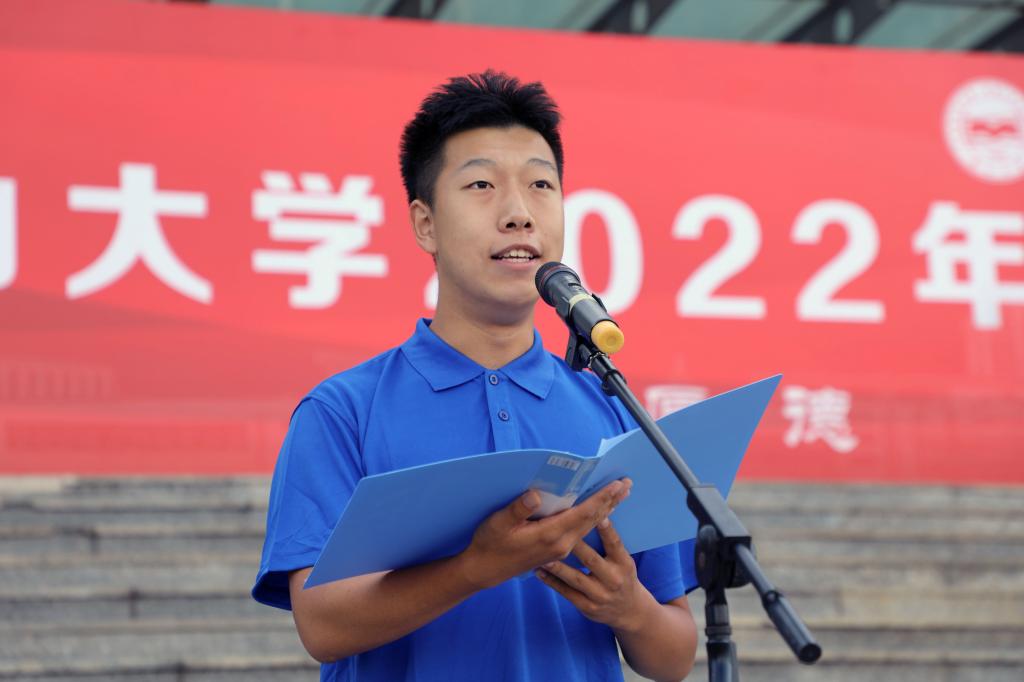 升旗仪式上,校院领导为新生代表佩戴了燕山大学校徽,并嘱托2022级新生牢记“厚德、博学、求是”的校训,赓续传承燕大人的文化品格,努力成长为可堪大任的时代新人。