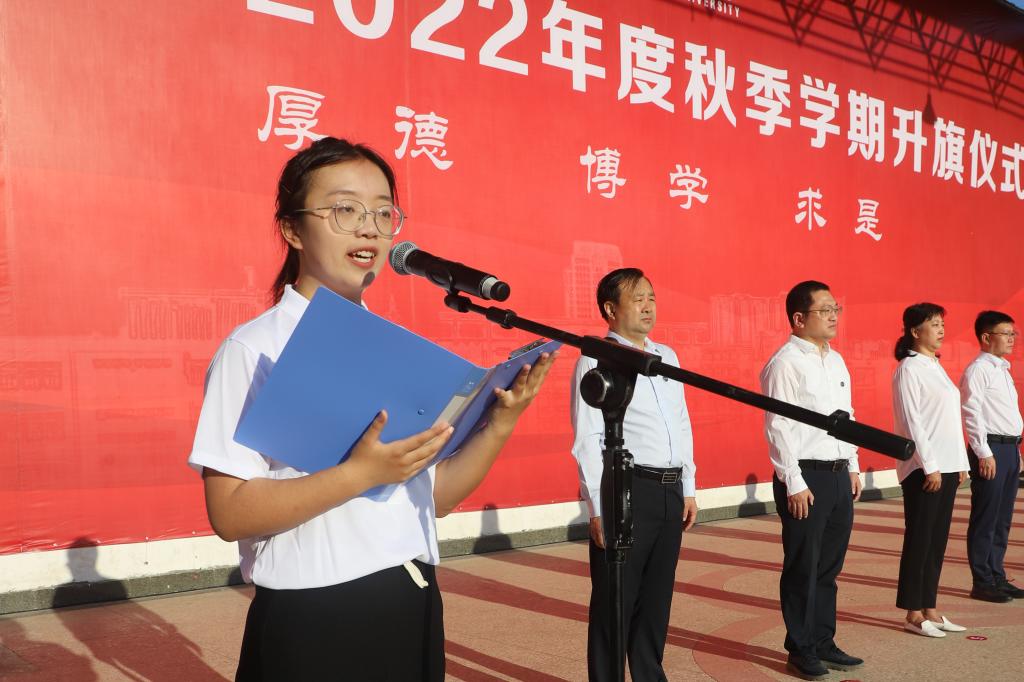 2022级新生代表秦思佳、张恒远、刘洋萌分别以“青春献礼二十大,强国有我新征程”为主题进行了国旗下的发言。他们表示,要倍加珍惜大学时光,提高内在素质、练就过硬本领,在强国之路上奋力奔跑,在复兴伟业中勇立潮头,跑出新一代燕大青年的最好成绩。