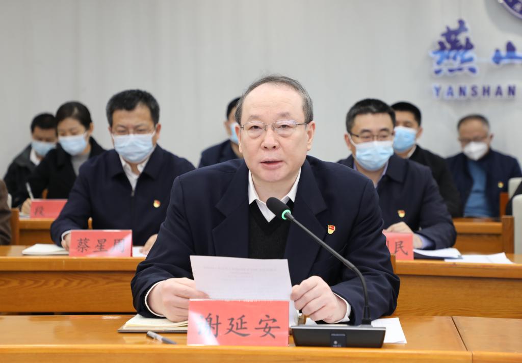 谢延安对学校2023年党的建设工作重点任务进行了安排部署,他指出,要以习近平新时代中国特色社会主义思想为指导,紧紧围绕深入学习贯彻党的二十大精神这条主线,坚持和加强党对高校的全面领导,全面贯彻落实党的教育方针,弘扬伟大建党精神,勇于开展自我革命,坚持全面从严治党战略方针。要以加强党的政治建设为统领,统筹强化党的创新理论武装,深入推动思想政治工作守正创新,建强抓实基层党组织建设,持续推动作风纪律建设,坚决维护校园安全稳定,着眼巩固深化、补足短板弱项,层层压实责任,全力推进“凝心铸魂式”的党建引领场景落地落实,坚定不移推动学校党建工作高质量发展,为学校各项事业发展提供坚强保证。