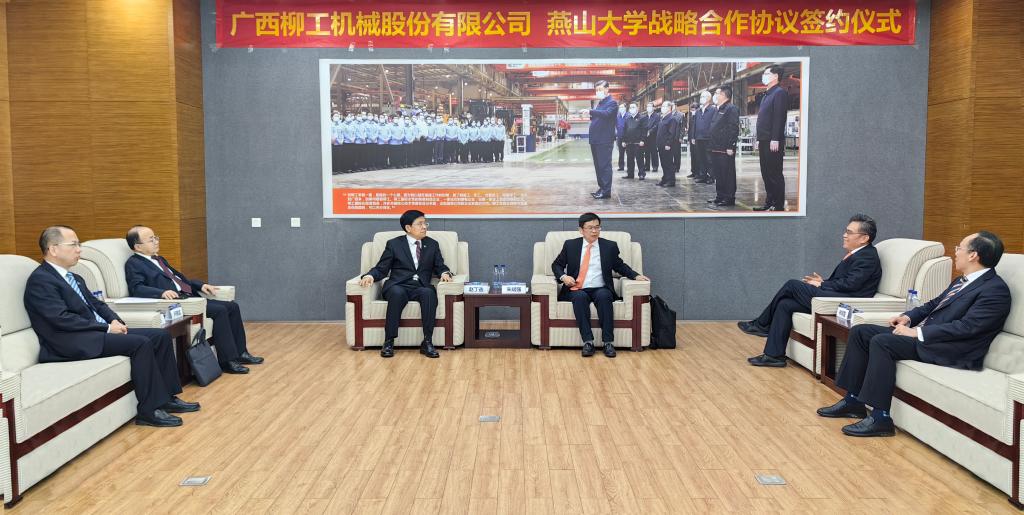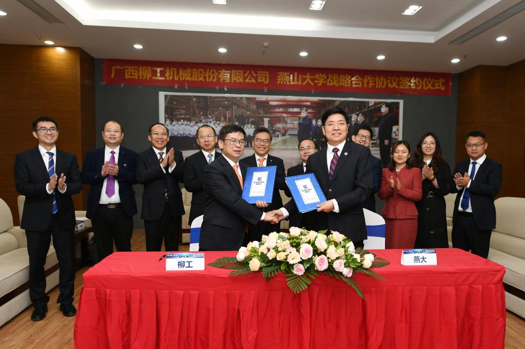 【新闻中心讯】4月25日,燕山大学与广西柳工机械股份有限公司(以下简称柳工)战略合作协议签约仪式在柳工全球研发中心举行,燕山大学校长赵丁选,柳工副总裁朱斌强、总工程师林明智等领导出席签约仪式。