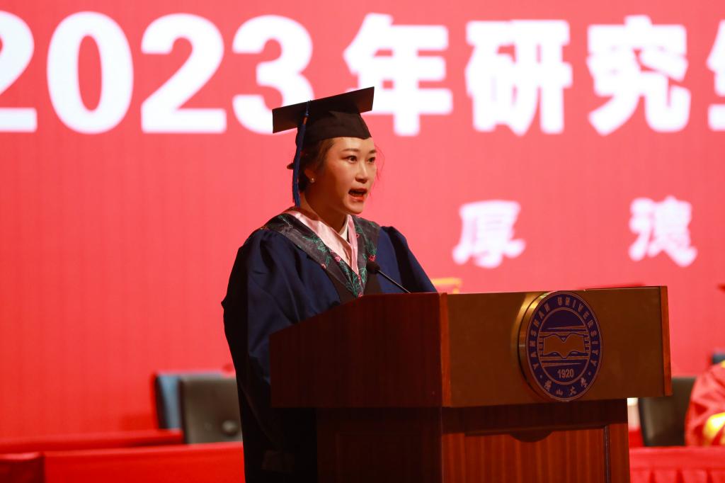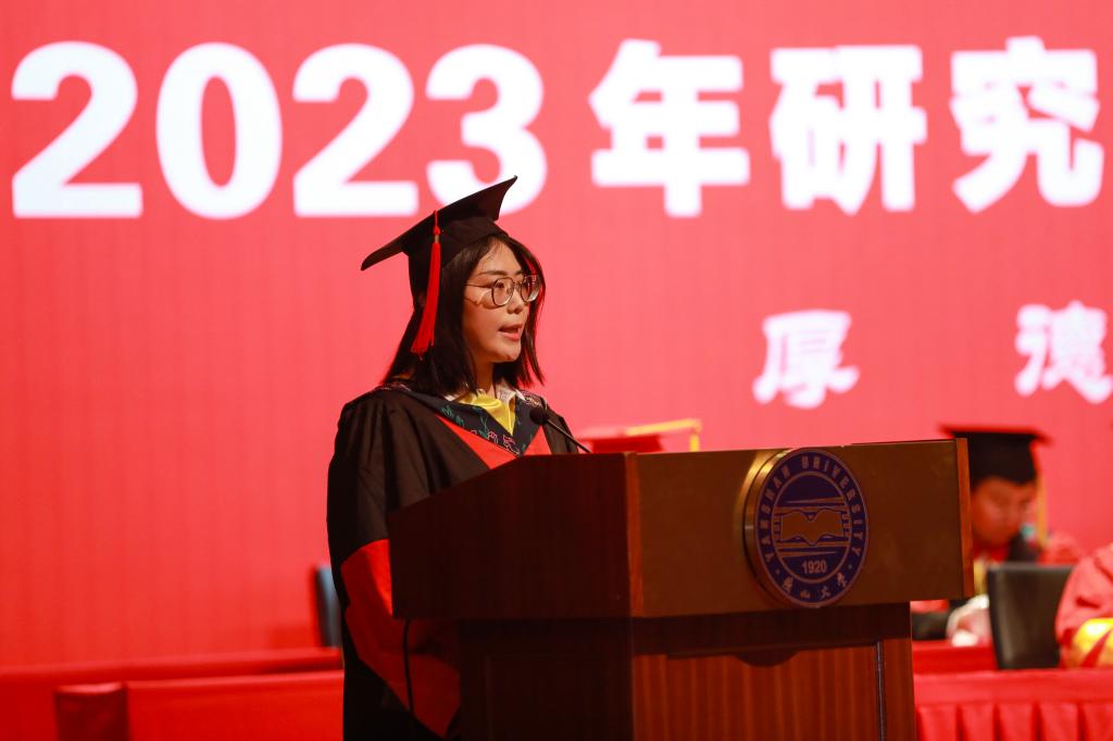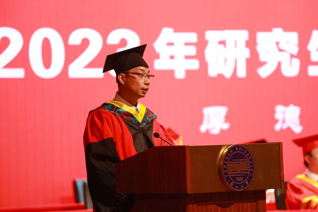 毕业生代表、材料科学与工程学院博士生耿林在仪式上发言
