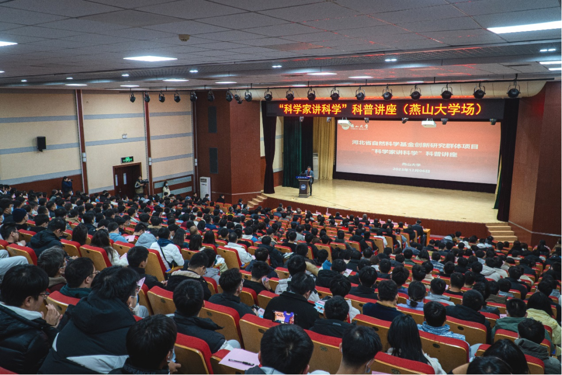 【新闻中心讯】为进一步贯彻落实国家关于科普和科学素质建设的重要部署,讲好科研故事,浓厚乐竞体育在线氛围,由河北省科学技术厅指导、燕山大学承办的河北省自然科学基金创新研究群体项目“科学家讲科学”科普讲座(燕山大学专场)活动,于12月6日晚在燕山大学西校区大学生活动中心举办。河北省自然科学基金委员会办公室朱书博、合作企业代表参加活动,燕山大学校长赵丁选出席活动并作讲座,校团委、科学技术研究院、机械工程学院、材料科学与工程学院和电气工程学院负责人参加活动,相关企业技术人员、我校教师、科研人员和本硕博学生等近600人到现场听取讲座。活动由科学技术研究院院长严书亭主持。
