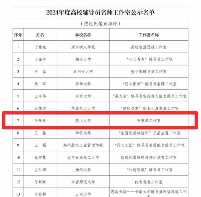 喜报!我校“王银思工作室”入选全国首批高校辅导员名师工作室