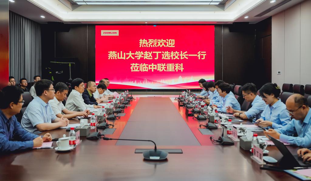 在中联重科股份有限公司,赵丁选一行实地参观了中联重科智慧产业城和工程机械馆,并和公司副总裁付玲、助理总裁袁野、起重机械关键技术全国重点实验室副主任刘延斌、人力资源管理中心人才招聘室主任陈露等相关人员进行了座谈。付玲对赵丁选一行来访表示欢迎,她介绍了中联重科中央研究院科研情况,希望双方继续加强合作,聚焦起重机械领域的研究与成果产出,规划起重机械相关领域国家重点项目,加强培养起重机械领域拔尖人才。赵丁选向长期以来关心和支持学校发展的中联重科公司表示感谢,对中联重科在我国工程机械领域和国家装备制造业自主创新方面作出的巨大贡献表示敬意。赵丁选指出,中联重科和燕山大学具有良好的合作基础,双方以共建起重机械关键技术全国重点实验室为契机,共同解决工程机械行业“卡脖子”难题。他表示,学校历来高度重视学生的综合素质培养,特别是注重培养具备创新精神和实践能力的高素质应用型人才。学校的学科优势、专业设置与中联重科企业文化及用人需求高度契合,期望双方在科研攻关、人才培养等方面开展更加紧密的合作,共同推动人才链、创新链、产业链的融合发展。机械工程学院院长彭艳介绍了燕山大学起重机械关键技术全国重点实验室建设情况,电气工程学院副院长刘爽介绍了燕山大学卓越工程师学院建设情况,招生就业处副处长宋晓飞介绍了燕山大学招生就业情况。