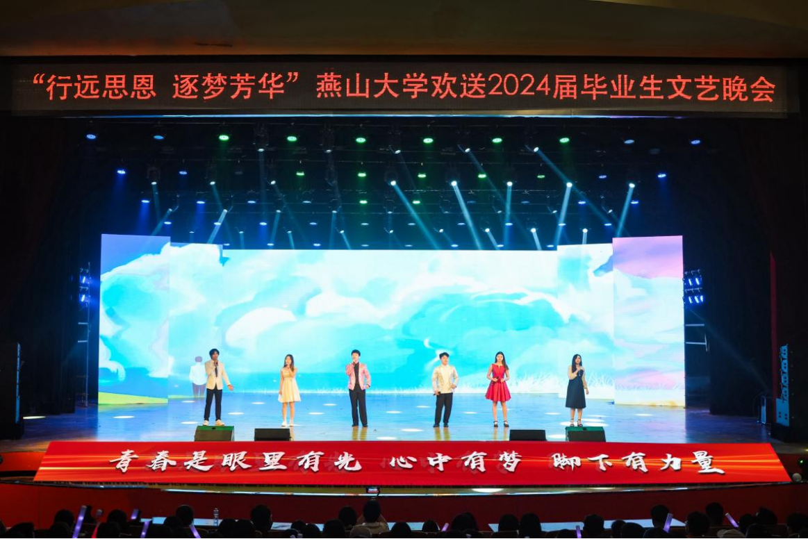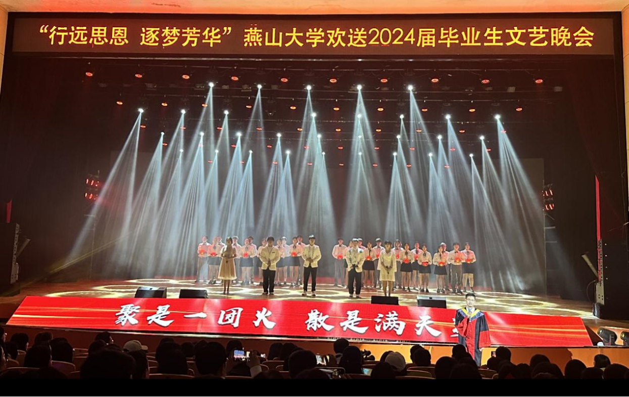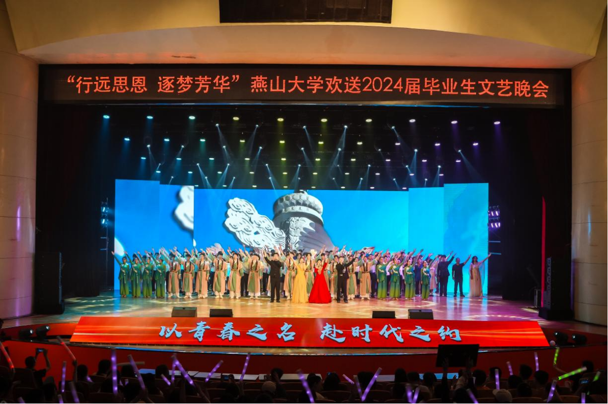 本场晚会由共青团燕山大学委员会主办,旨在深入学习宣传贯彻习近平新时代中国特色社会主义思想和党的二十大精神,欢送2024届毕业生从燕大出发,越山向海开启人生新征程。希望所有毕业生在广阔的人生舞台上,以“有理想”远眺前路、“敢担当”拓宽天地、“能吃苦”披荆斩棘、“肯奋斗”搏击长空,发扬熔铸在燕大人骨子里的文化品格,在新时代的召唤中展现青年作为、彰显青春风采、贡献青春力量,奋力书写为中国式现代化挺膺担当的青春篇章。(编辑 褚玉晶)