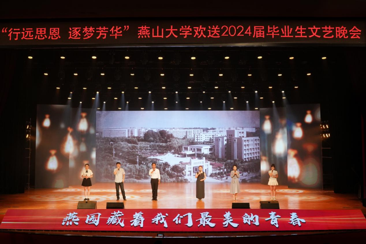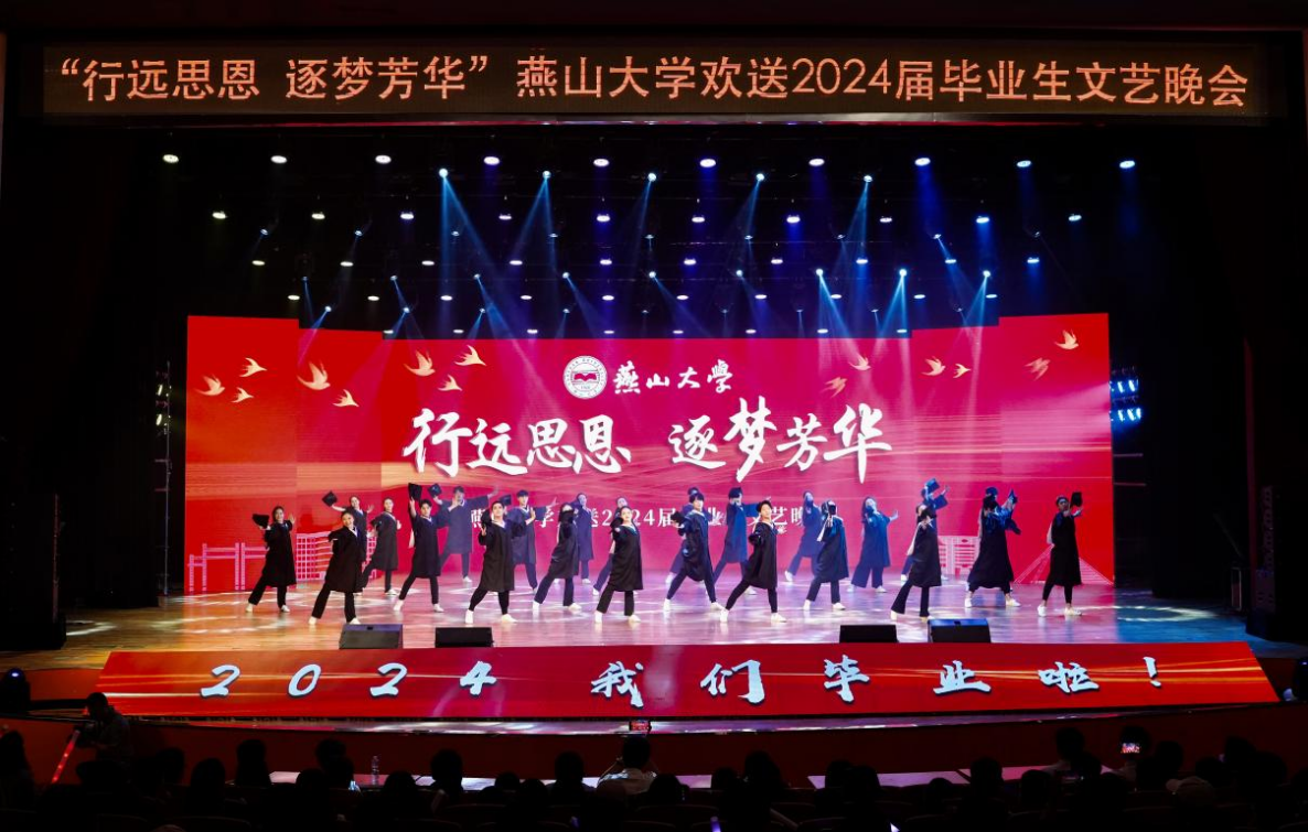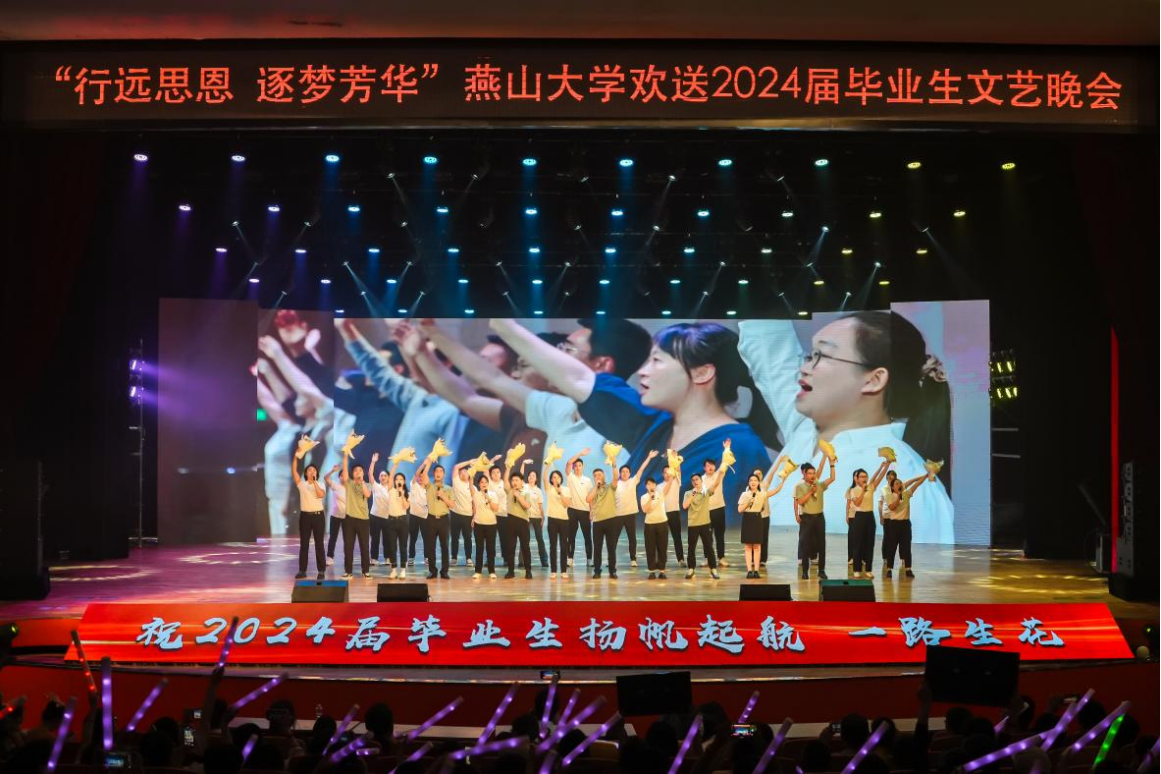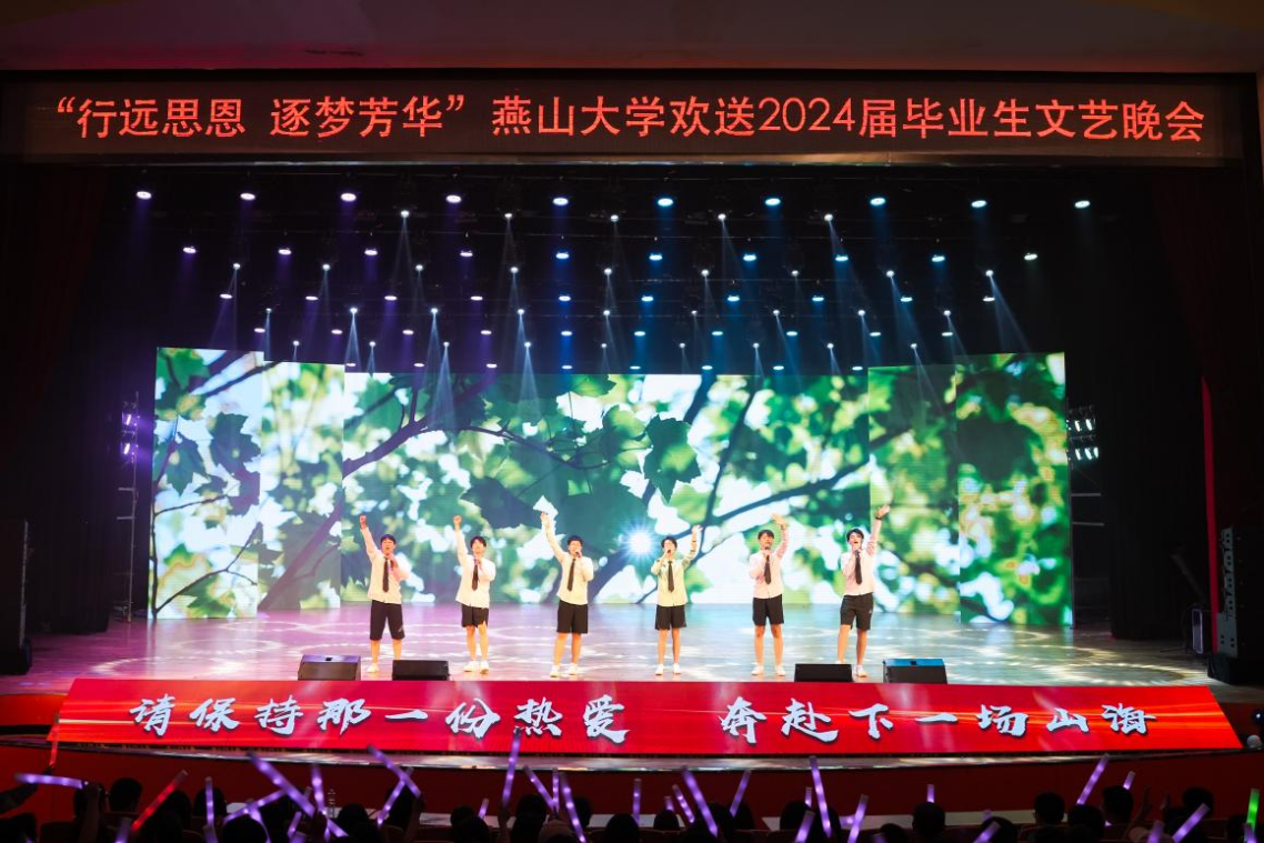 本场晚会由共青团燕山大学委员会主办,旨在深入学习宣传贯彻习近平新时代中国特色社会主义思想和党的二十大精神,欢送2024届毕业生从燕大出发,越山向海开启人生新征程。希望所有毕业生在广阔的人生舞台上,以“有理想”远眺前路、“敢担当”拓宽天地、“能吃苦”披荆斩棘、“肯奋斗”搏击长空,发扬熔铸在燕大人骨子里的文化品格,在新时代的召唤中展现青年作为、彰显青春风采、贡献青春力量,奋力书写为中国式现代化挺膺担当的青春篇章。(编辑 褚玉晶)