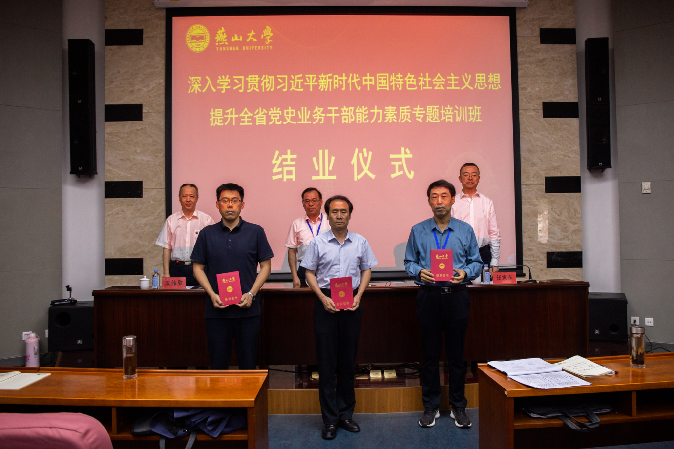 【新闻中心讯】6月2日-7日,由中共河北省委组织部、河北省委党史研究室主办,燕山大学承办的“深入学习贯彻习近平新时代中国特色社会主义思想,提升全省党史业务干部能力素质专题培训班”圆满完成各项培训任务。省委党史研究室全体干部,各市(含定州、辛集市)、雄安新区党史部门业务骨干以及省委党校(河北行政学院)、省社科院、部分省属高校思政课教师参加培训。